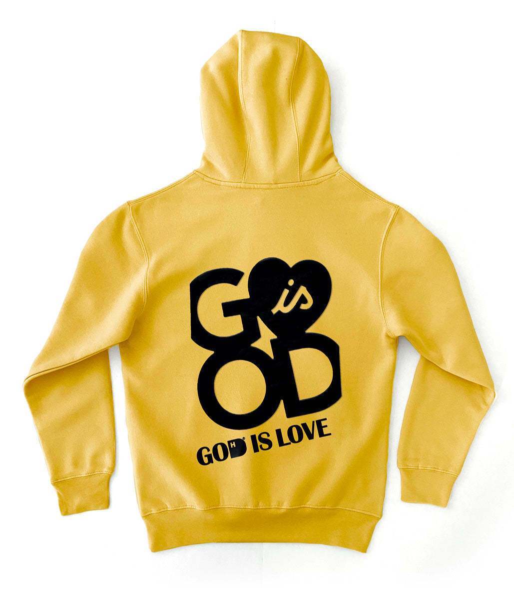 God is Good. God is Love. What is God to you? The classic unisex, mid-weight hoodie with a soft hand feel. Made from 80% ring-spun cotton, 10% polyester, and 10% recycled polyester. 3 panel hood that's fleece lined for extra comfort. Double-needle topstitch on all seams. Dyed-to-match drawcords with tipped ends and metal eyelets. Kangaroo pocket with ribbed cuffs and waistband.